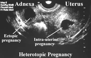 et.al. Heterotopic pregnancy diagnosed by endovaginal scanning. J Clin