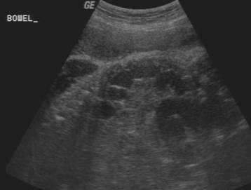 measuring 15-30mm. This represents the meconium filled rectum in the term fetus.